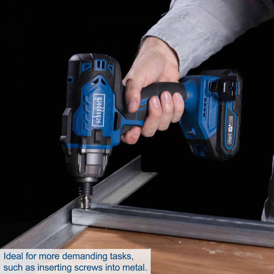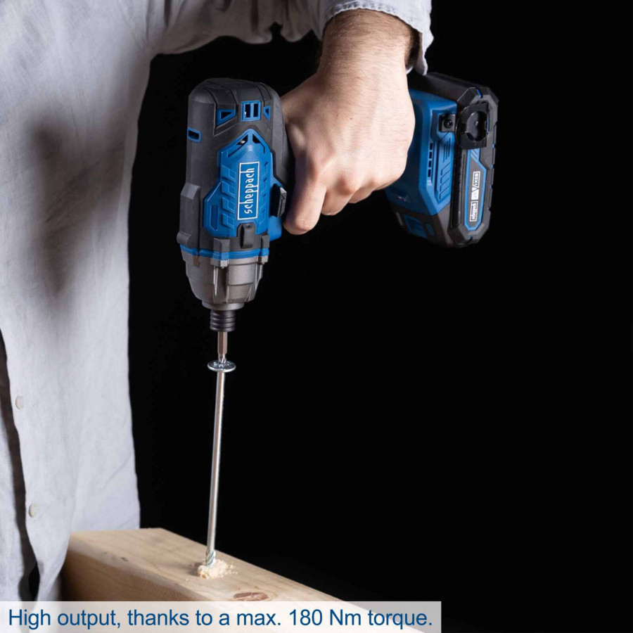 Būkite pirmas aprašęs “Akumuliatorinis smūginis suktuvas C-ID180-X 20V, set S (2Ah + charger), Scheppach”