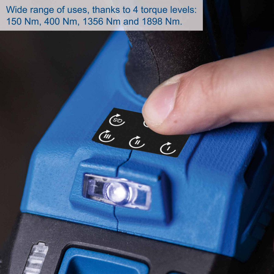 4 reguliuojami sukimo momento lygiai (150 / 400 / 1356 / 1898 Nm)