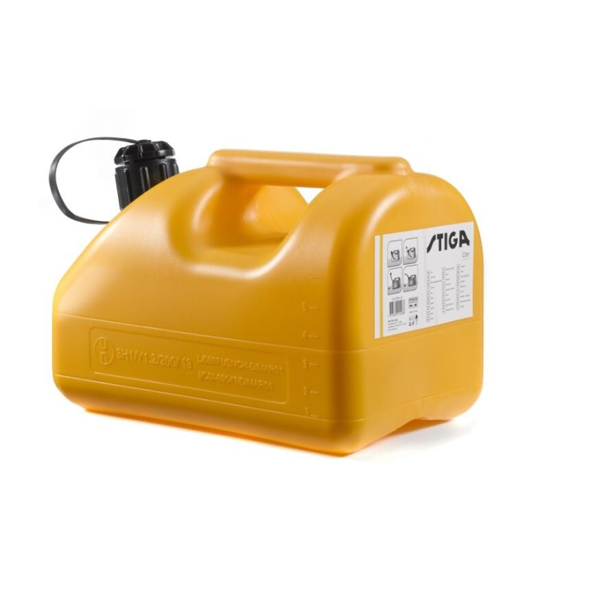 Sertifkuotas, aukštos kokybės plastiko bakelis saugiam kuro laikymui, geltonas. Patogus piltuvas leidžia skysčiui tekėti neprabėgant pro šoną. Tvirtas, funkcionalus ir lengvai transportuojamas.