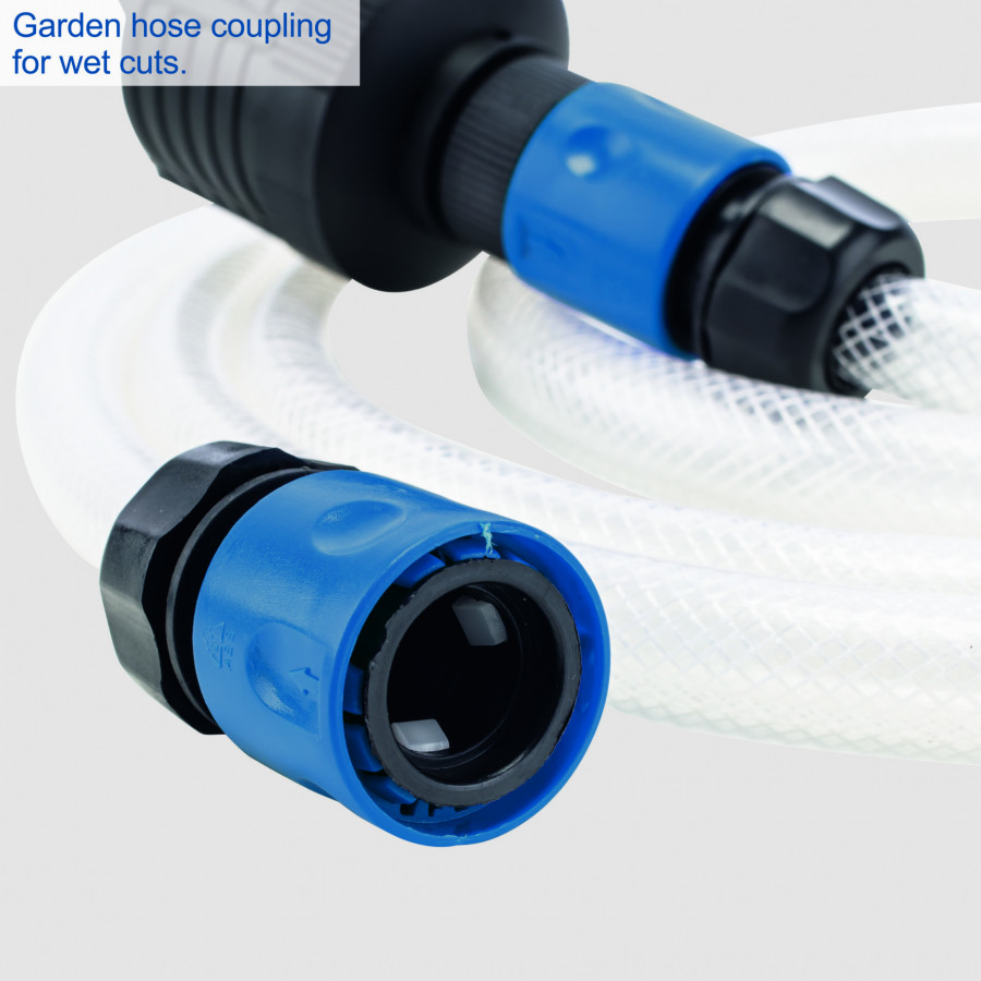 Sausas ir šlapias pjovimas: galimybė prijungti sodo žarną ir reguliuoti vandens slėgį vožtuvais prie disko.