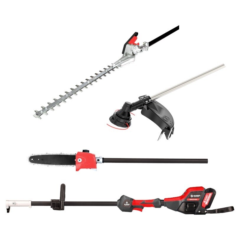 Blue Bird COMBI 22-800 akumuliatorinis multi įrankis Blue Bird COMBI 22-800 – tai universalus ir patikimas akumuliatorinis įrankis, sukurtas įvairioms sodo priežiūros užduotims atlikti. Šis modelis išsiskiria 21V įtampos baterija, kuri užtikrina ilgalaikį veikimą be laidų ir kuro. Įrankis yra labai patogus, jo svoris siekia tik 4,5 kg, todėl dirbti su juo bus lengva ir efektyvu. 47 cm ilgio ašmenys užtikrina greitą ir tikslų gyvatvorių pjovimą, o 24 cm pjovimo juosta su 1/4 colio žingsniu ir 48 grandinės nareliais leidžia lengvai ir efektyviai atlikti genėjimo darbus. Šis įrankis turi pjovimo galvą, kurios skersmuo siekia 340 mm, o 97 cm prailginimo koto ilgis suteikia galimybę patogiai pasiekti aukščiau esančias šakas ar sunkiau pasiekiamas vietas. Su 0,8 kW galingumu, šis įrankis yra puikus pasirinkimas tiems, kurie ieško daugiafunkcinio sprendimo sodui, kuriuo galima tvarkyti tiek gyvatvores, tiek šakas ar kitus augalus.