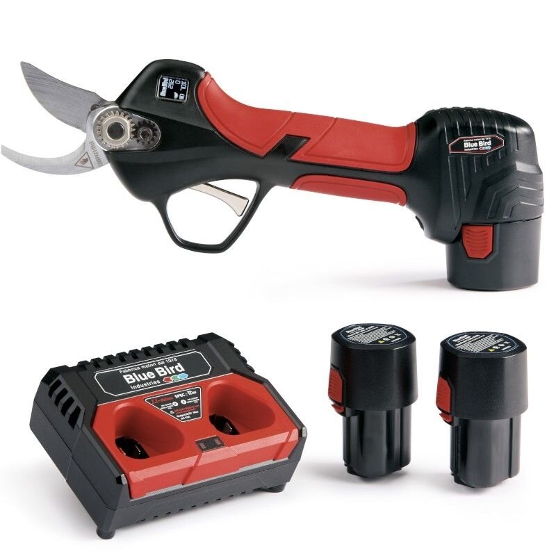 Blue Bird PS 22-23 TWIN akumuliatorinis sekatorius Šių akumuliatorinių sodo žirklių ašmenys yra iš SK-5 šveicariško plieno, kuris suteikia ašmenims ypatingą galią, kietumą ir kirpimo greiti 0,4 s, o taip pat atsparumą nuo pažeidimų. Sekatorius turi mini ekraną, kuris: automatiškai užsidega, kai akumuliatoriaus įkrova sumažėja iki 20 %; klaidos atveju, parodo jos kodą, kad lengviau būtų identifikuoti problemą; rodo atliktų pjūvių skaičių. Šias akumuliatorines sodo žirkles galima naudoti su papildomu priedu – teleskopiniu kotu EP 22-22 Testavimo metu įsitikinta, kad su vienu įkrautu akumuliatoriumi galima atlikti nuo 2000 iki 6000 kirpimų, priklausomai nuo karpomos medienos tipo ir storumo. Darbo laikas su vienu akumuliatoriumi apie 3-4 val.