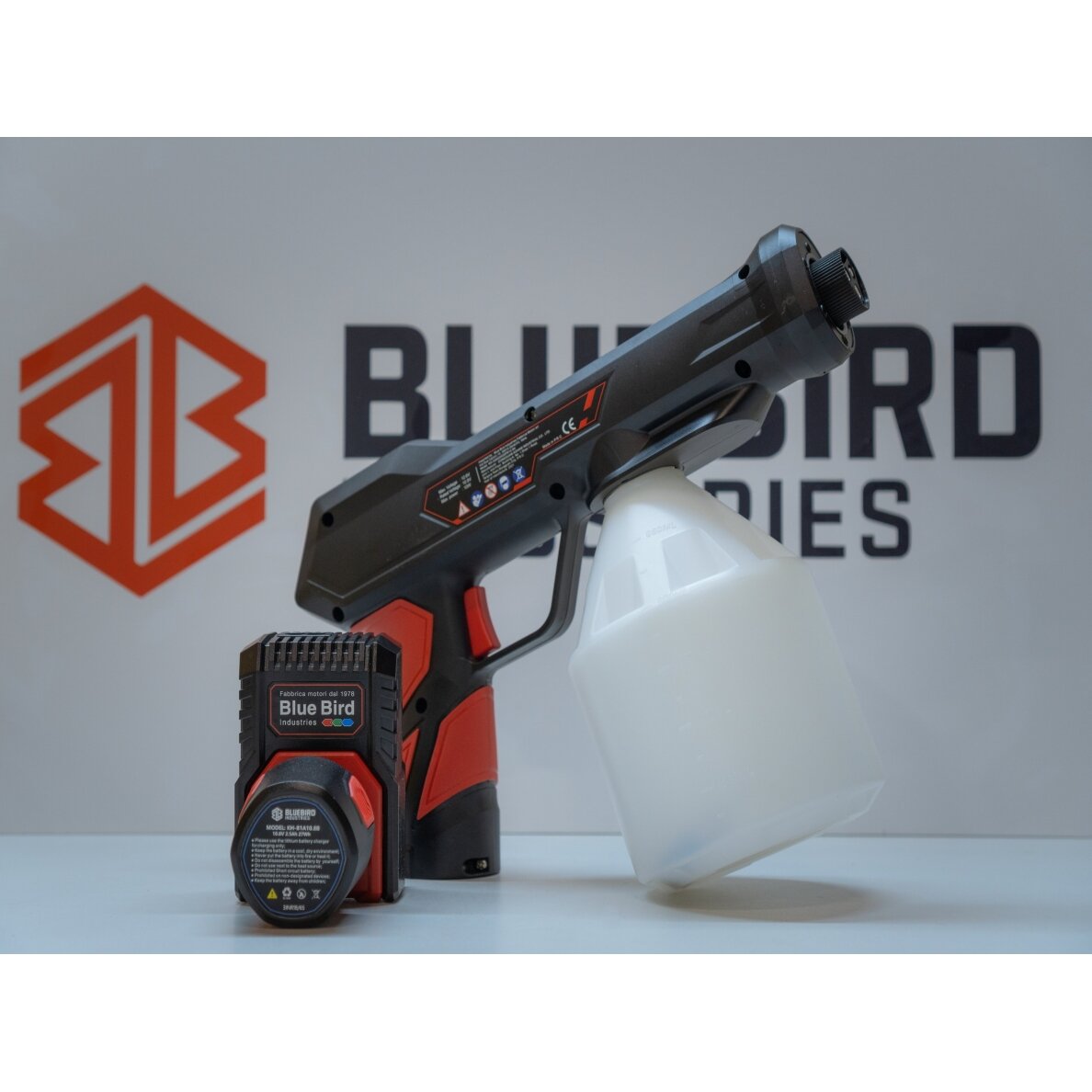 Blue Bird SG 22-10 akumuliatorinis purkštuvas Elektrinis purkštuvas su ličio jonų baterija Blue Bird SG 22-10 puikiai tinka purkšti ploviklius, insekticidus, pesticidus, dezinfekcinius skysčius ir kita. Purškiamas skystis susmulkinamas į labai mažas daleles, kad tolygiai padengtų apdorojamus paviršius. Tinka naudoti dezinfekcijai, drėkinimui, sanitarijai – visur kur reikalingas purškimas. Purkštuvas labai patogus naudoti ir lengvai valdomas. Galima reguliuoti purškimo galią, trys purškimo antgaliai leidžia lengvai pasirinkti dulksnos tipą. Dezinfekavimo efektyvumui sustiprinti purkštuvas turi 6 ultravioletinius LED.