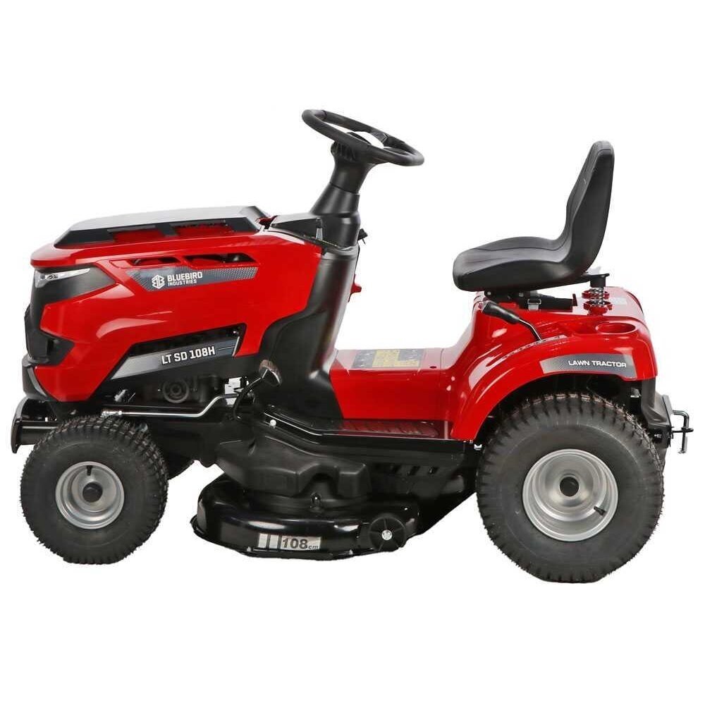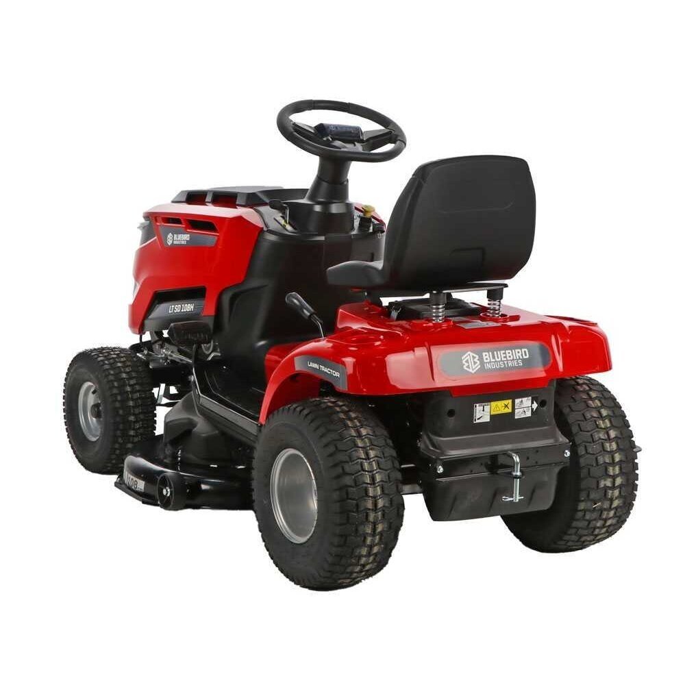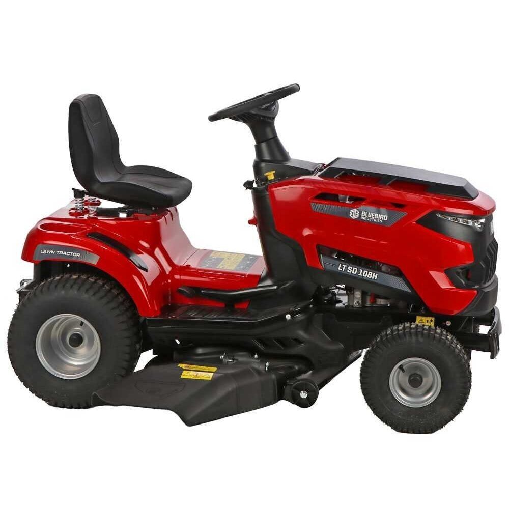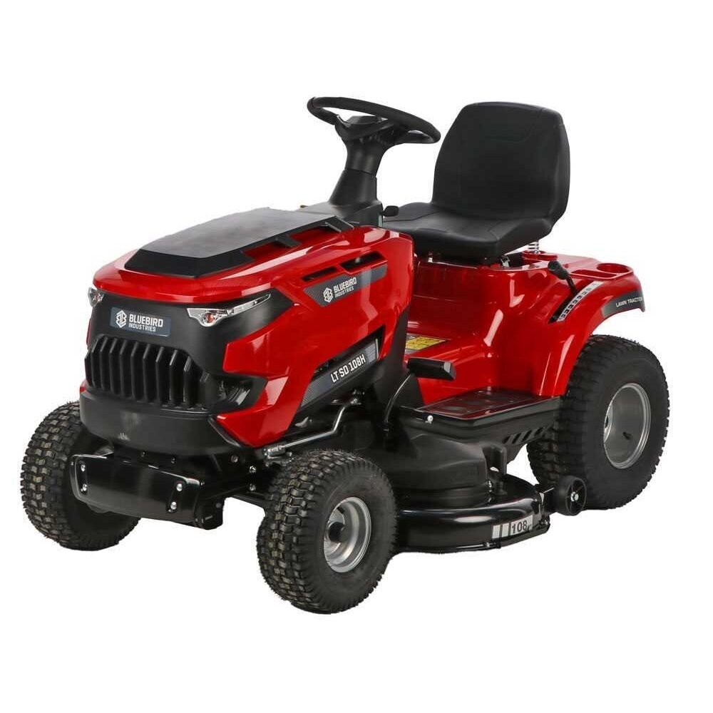 Blue Bird TR SL 108H TWIN SODO TRAKTORIUKAS „Blue Bird TR SL 108H TWIN“ vejos traktorius su šoniniu žolės išmetimu. Traktoriukas yra su efektyviu 586 cc Loncin varikliu. Jo pjovimo deka yra su dviem peiliais, o pjovimo plotis 108 cm. Pjovimo aukštis reguliuojamas ir gali būti nustatytas į 7 skirtingas padėtis nuo 30 mm iki 90 mm. Galingas variklis ir platus pjovimo plotis leis nupjauti didelius plotus be jokių rūpesčių. Šis sodo traktoriukas turi hidrostatinę transmisiją, kuri leidžia patogiai pedalu valdyti greitį tiek pirmyn, tiek atgal. Peiliai paleidžiami tiesiog mygtuko paspaudimu per elektromagnetinę sankabą.