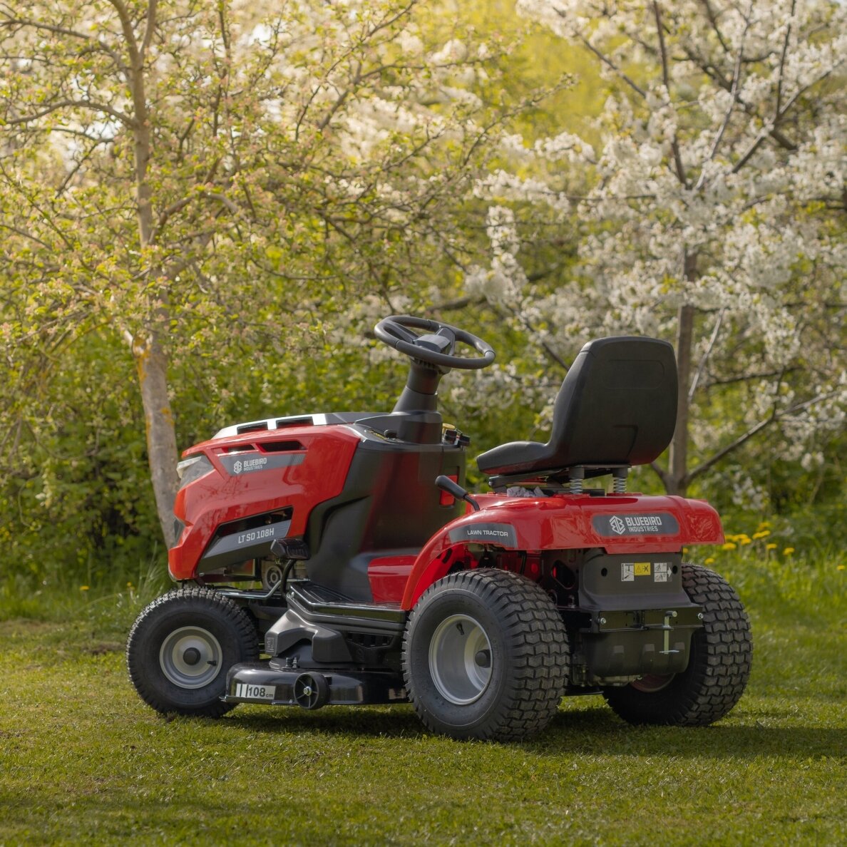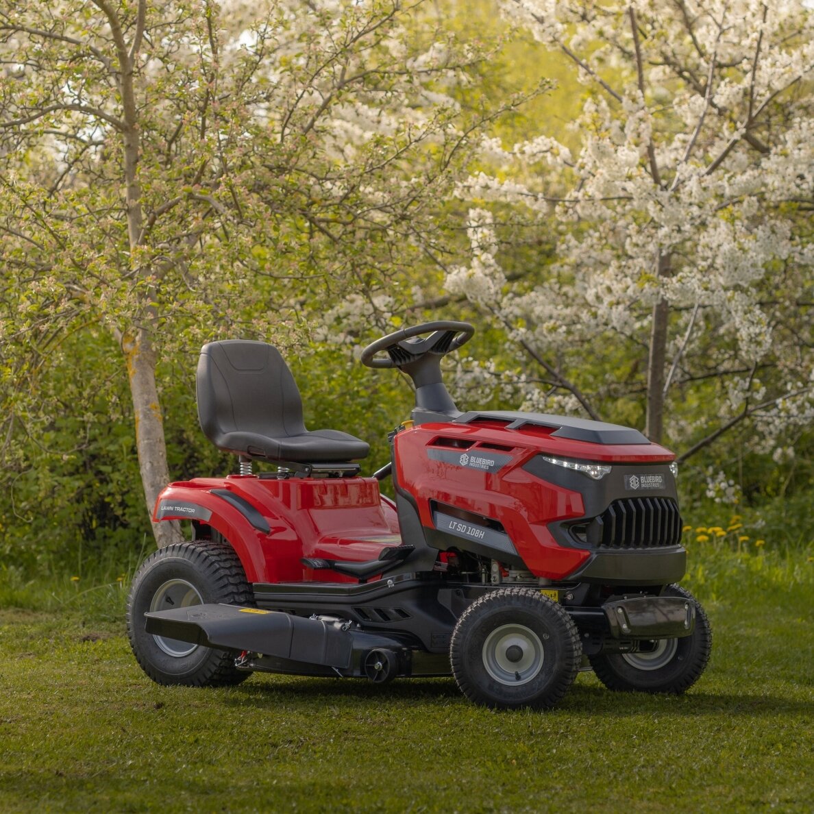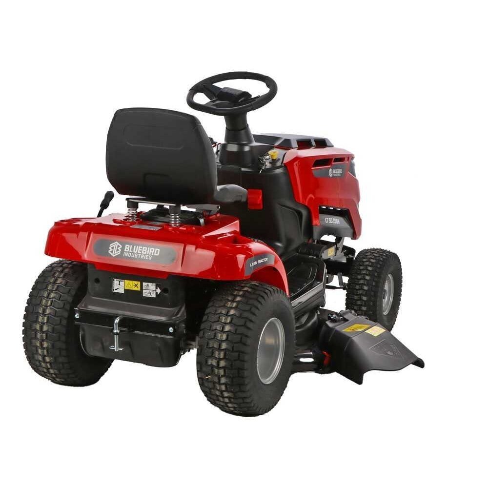 Blue Bird TR SL 108H TWIN SODO TRAKTORIUKAS „Blue Bird TR SL 108H TWIN“ vejos traktorius su šoniniu žolės išmetimu. Traktoriukas yra su efektyviu 586 cc Loncin varikliu. Jo pjovimo deka yra su dviem peiliais, o pjovimo plotis 108 cm. Pjovimo aukštis reguliuojamas ir gali būti nustatytas į 7 skirtingas padėtis nuo 30 mm iki 90 mm. Galingas variklis ir platus pjovimo plotis leis nupjauti didelius plotus be jokių rūpesčių. Šis sodo traktoriukas turi hidrostatinę transmisiją, kuri leidžia patogiai pedalu valdyti greitį tiek pirmyn, tiek atgal. Peiliai paleidžiami tiesiog mygtuko paspaudimu per elektromagnetinę sankabą.