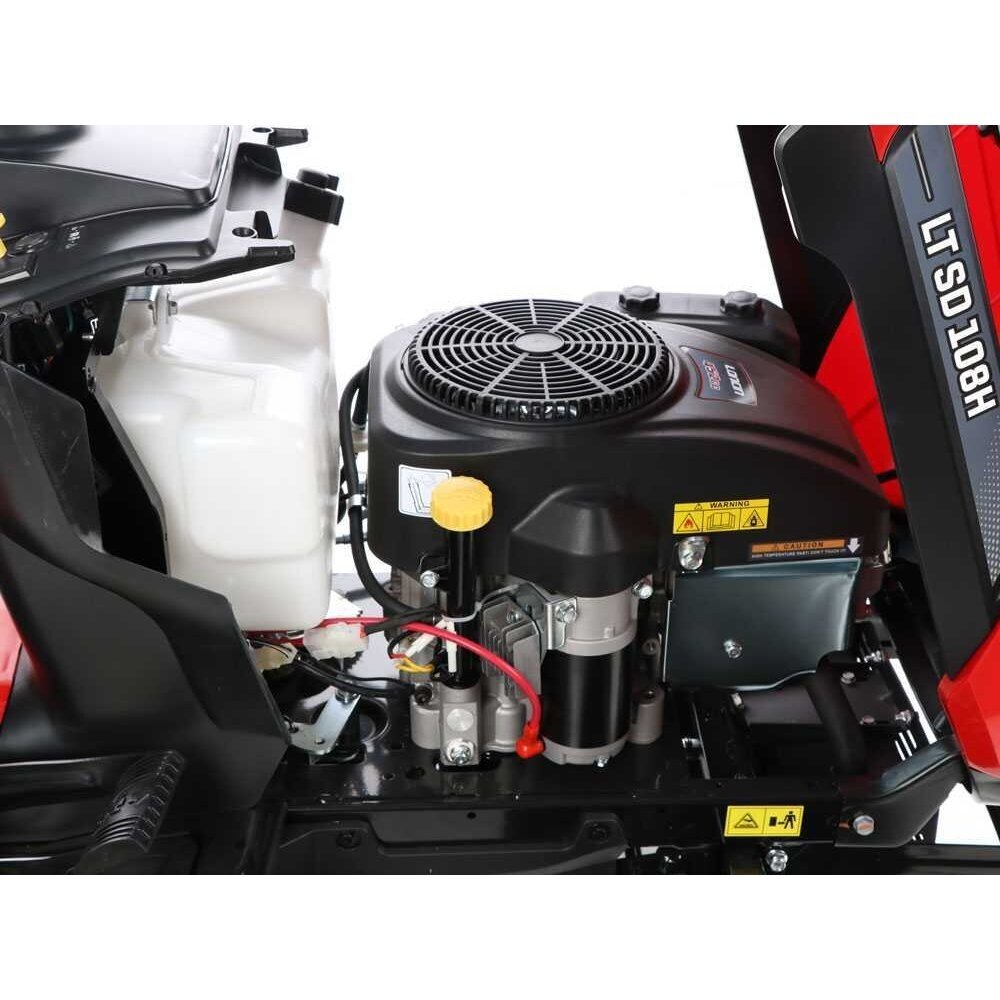 Sodo traktoriukas su šoniniu išmetimu, turi 108 cm pločio pjovimo deką su dviem peiliais. Hidrostatinė pavara patogiam ir greitam manevravimui.