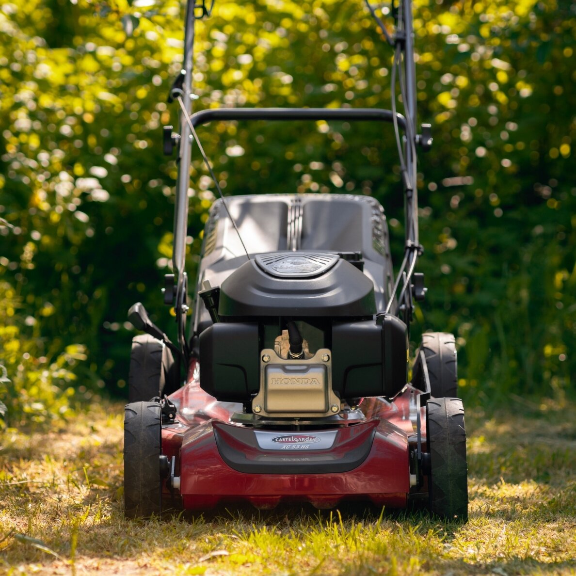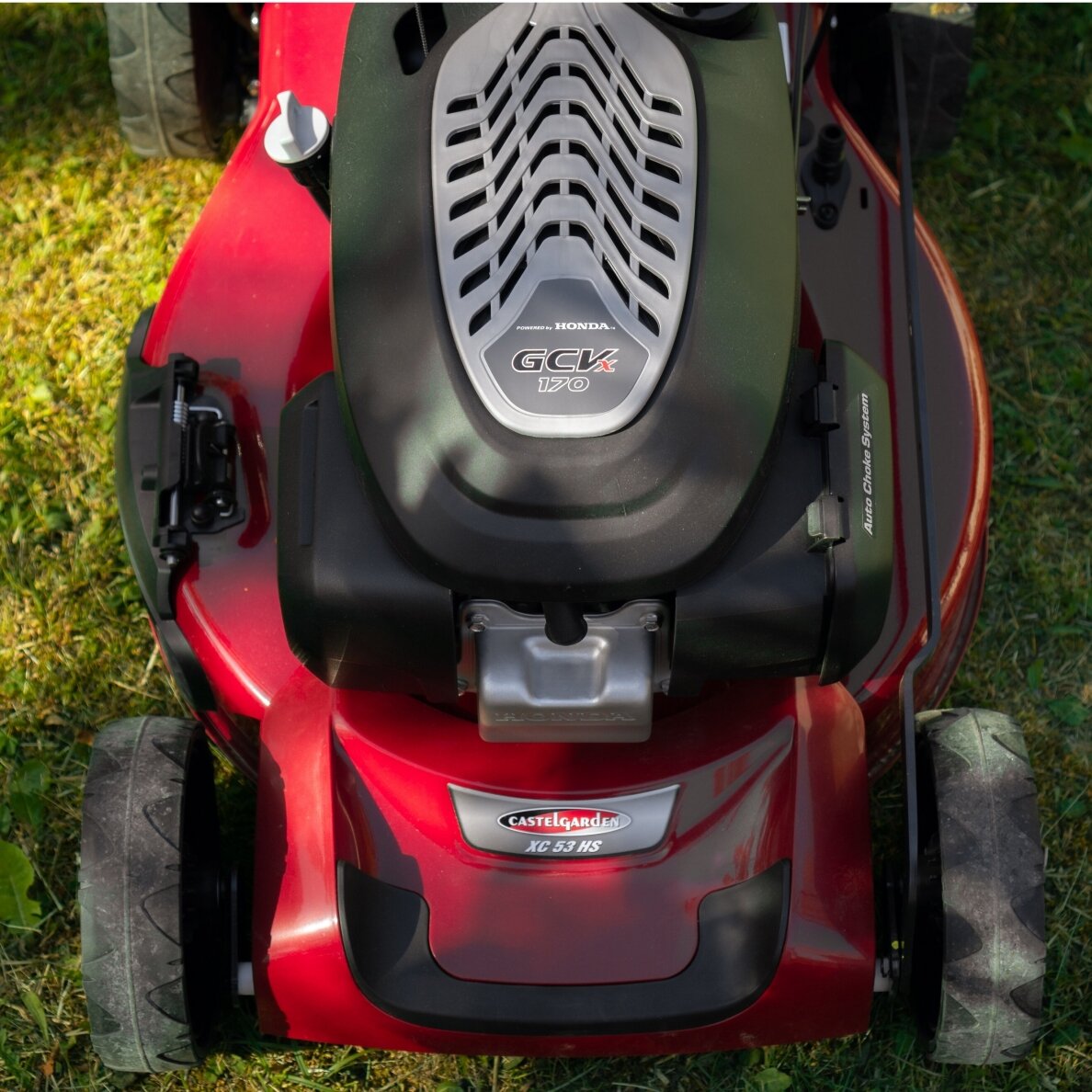 „Castelgarden XC 53 HS“ yra savaeigė benzininė žoliapjovė, turinti 51 cm pločio pjovimo deką ir 167 cc „Honda GCVx170“ variklį, kurio galia yra 3,3 kW prie 2900 aps/min. Žoliapjovės keturi viename funkcija leidžia rinktis norimą nupjautos žolės tvarkymo būdą – surinkti į rinktuvą, pašalinti per šoną, pašalinti per galą arba mulčiuoti. Žolės surinkimo krepšys yra plastikinis ir 60 litrų talpos. Norimą žolės pjovimo aukštį galima lengvai nustatyti svirtimi pasirenkant vieną iš 6 galimų aukščio nustatymų – nuo 22 iki 80 mm aukščio. Ergonomiška rankena garantuoja maksimalų komfortą, net ir ilgai dirbant. Jos ilgis reguliuojasi, o transportuojant galima užlenkti. Šios benzininės vejapjovės ratai yra su guoliais ir paminkštintu protektoriumi, dydis (priekiniai/galiniai) – 200/280 mm.