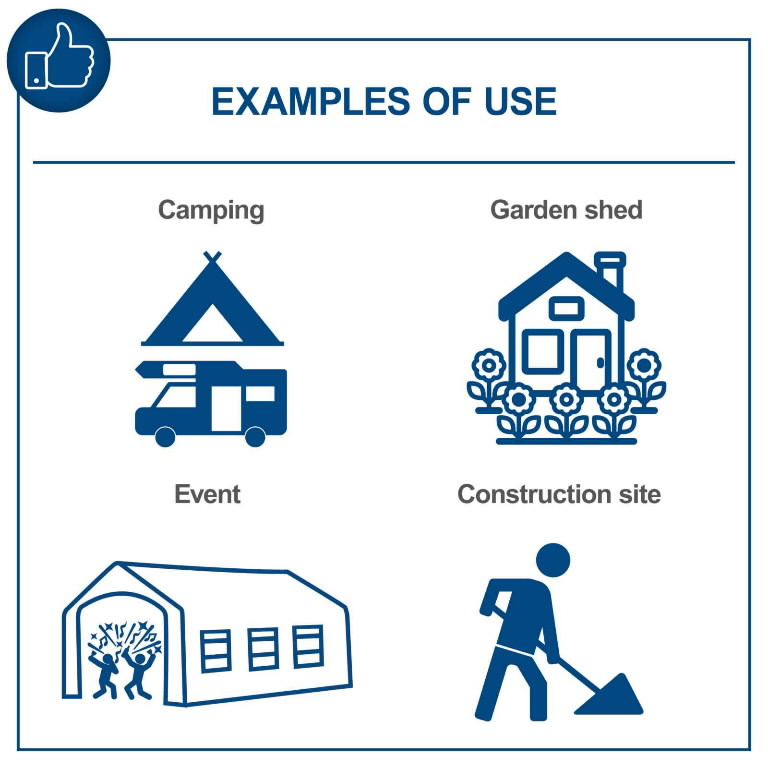 aplink namą, statybvietėje arba kaip avarinis maitinimo šaltinis. Atsparus korpusas, transportavimo rankena, keturi ratai – šis elektros generatorius