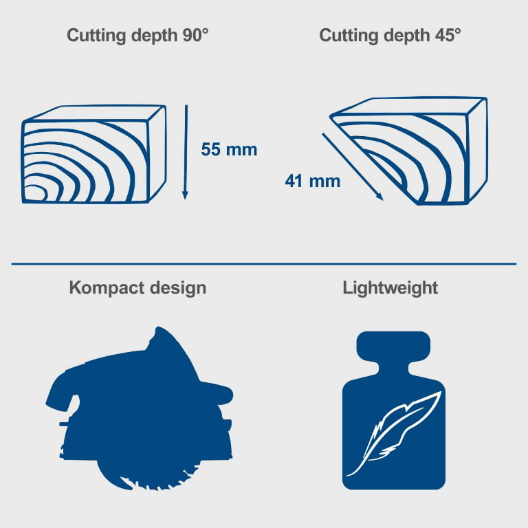 Maksimalus pjovimo gylis, 45° kampu, be liniuotės 41 mm