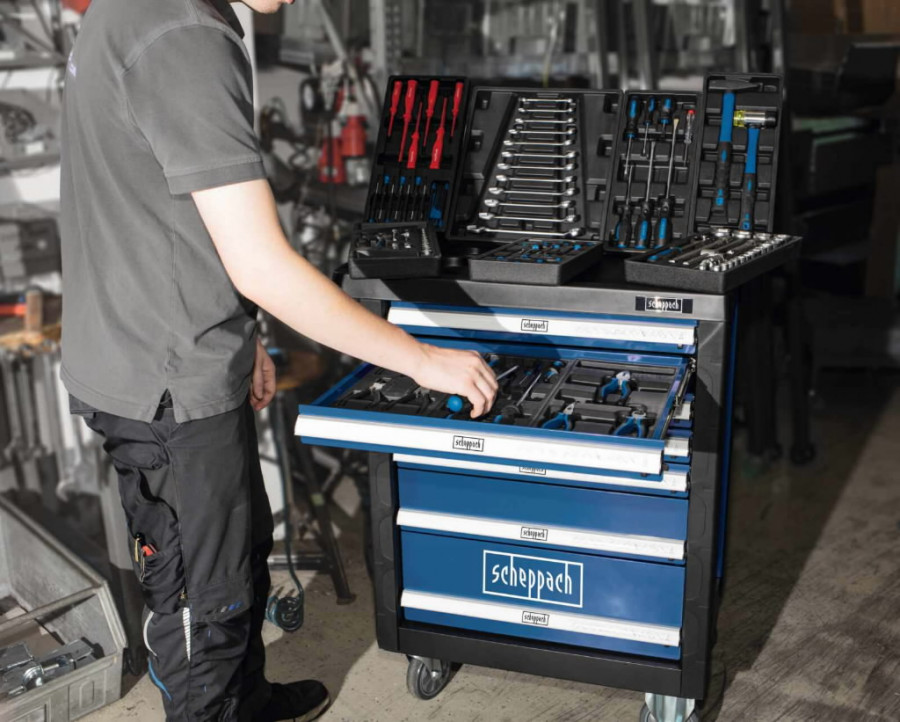 Visada tinkami įrankiai po ranka! Scheppach TW1000 įrankių vežimėlis suteikia visą aukštos kokybės įrankių rinkinį ant ratukų jūsų dirbtuvėms ar garažui. Patvarus ir užrakinamas vežimėlis užpildytas 263 profesionaliais įrankiais, kuriems kiekvienas turi savo vietą, užtikrinant greitą ir patogų pasiekimą.
