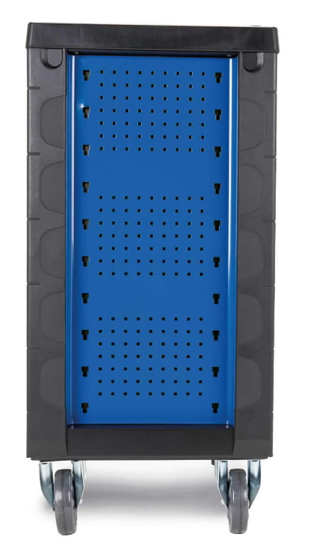 Dėl didelių ratukų su užrakinimo funkcija vežimėlį lengva perkelti ir saugiai pastatyti. Minkštos Soft-Grip rankenos užtikrina patogų transportavimą, o didelis viršutinis darbinis paviršius ir šoniniai skydai su papildomomis angomis suteikia daugiau laikymo galimybių.