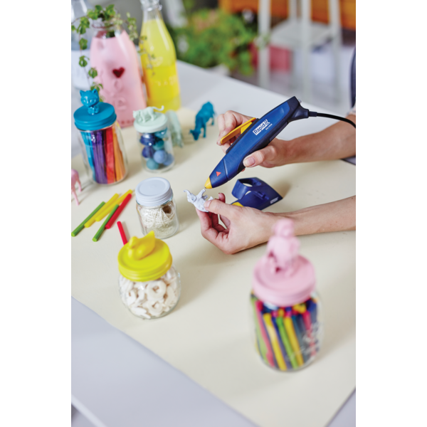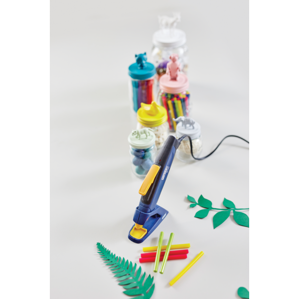 Šis universalus rašiklio formos klijų pistoletas idealiai tinka naudoti namuose, taip pat meno ir amatų projektuose. Dėl savo formos jis yra patogesnis ir turi ilgą gaiduką, kad klijavimas būtų sklandesnis ir valdymas būtų tikslesnis dirbant su sudėtingomis detalėmis. Jis įkaista vos per 60 sekundžių ir tiekiamas su stabiliu stovu praktiškam, saugiam ir nelipniam laikymui tarp naudojimo laikotarpių. Sukurta naudoti su mūsų 7 mm skaidrių ir spalvotų klijų lazdelių asortimentu, todėl puikiai tinka daugeliui sričių.