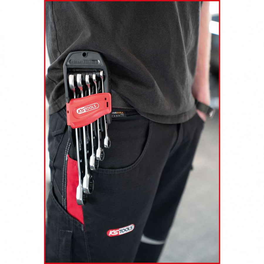 Būkite pirmas aprašęs “Kombinuotų terkšlinių raktų komplektas 5vnt, 8-19mm, KS Tools”