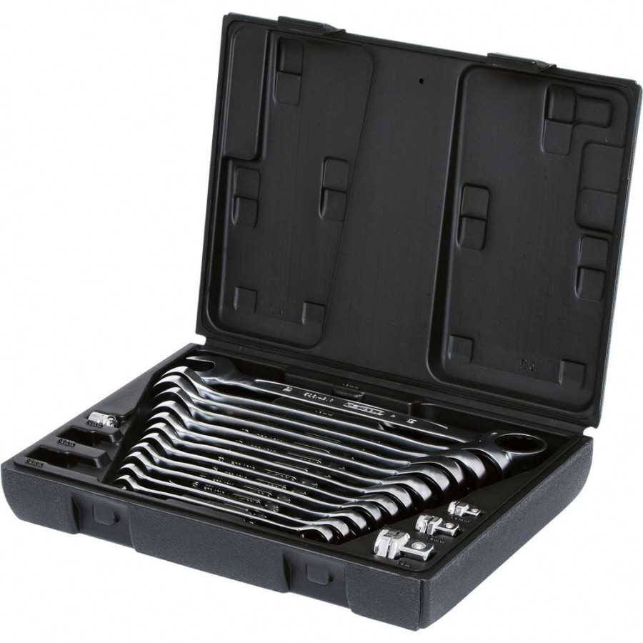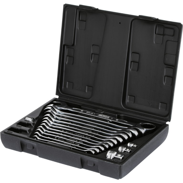 Būkite pirmas aprašęs “Kombinuotų terkšlinių raktų komplektas su adapteriais 16vnt, KS Tools”