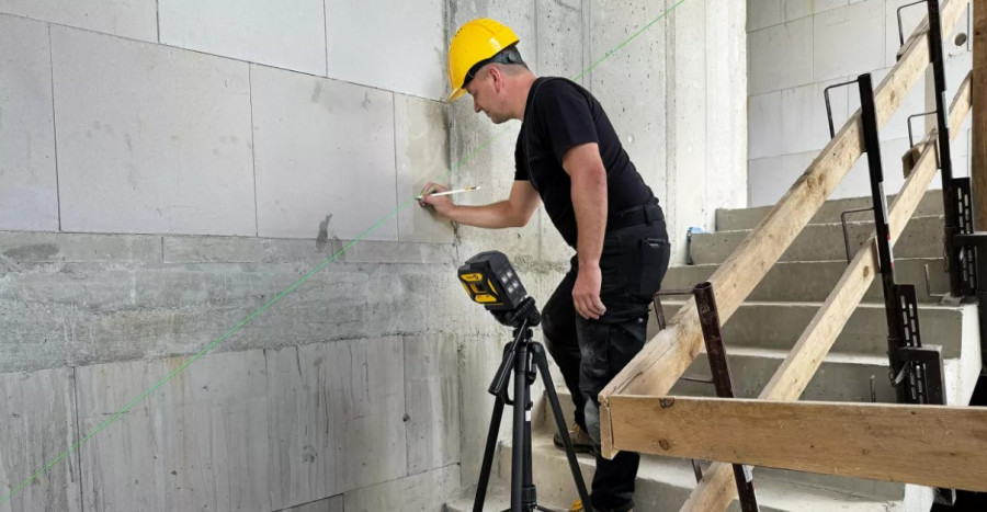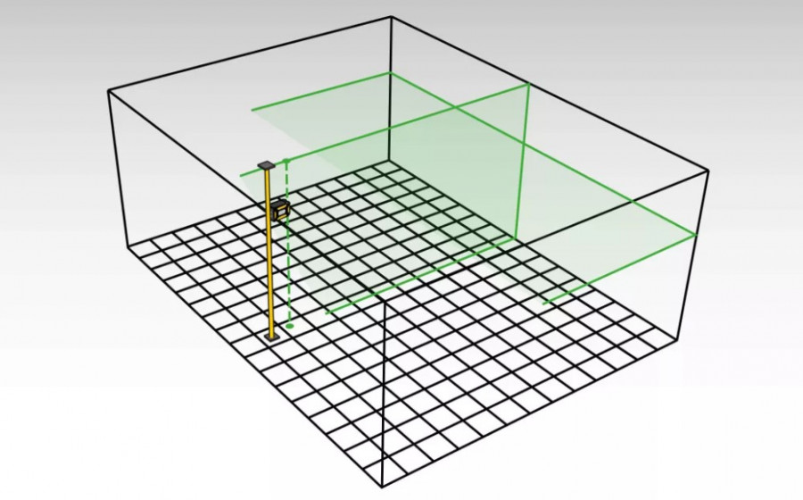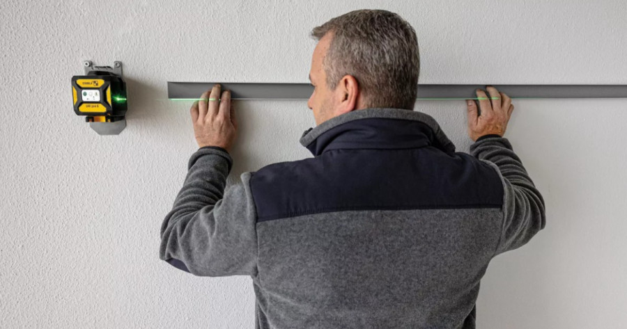 Kompaktiškas, baterijomis maitinamas kryžminių linijų lazeris su gulsčiuko taškais, skirtas darbui horizontaliuose ir vertikaliuose paviršiuose.