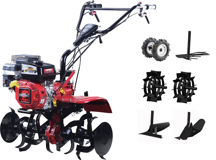 Tvirtas, galingas ir universalus kultivatorius Loncin LC850 su galingu profesionaliu varikliu ir mechanine pavarų dėže.