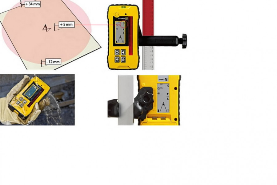 Lazerinis imtuvas, skirtas tiksliai nustatyti rotacinių lazerių spindulio padėtį su raudonais lazeriniais diodais – net ir dideliais atstumais.
