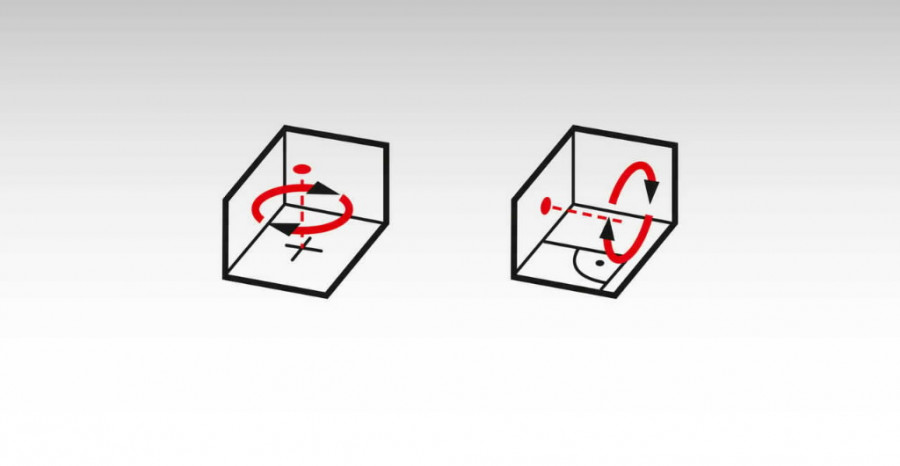 4 funkcijos: horizontali ir vertikali sukimosi linija, svambalo funkcija, 90 laipsnių kampas vertikaliu režimu.
