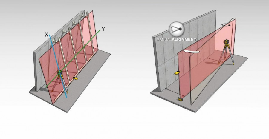 Rotacinis lazeris horizontaliai ir vertikaliai niveliuoti įskaitant statmenos padėties nustatymą
