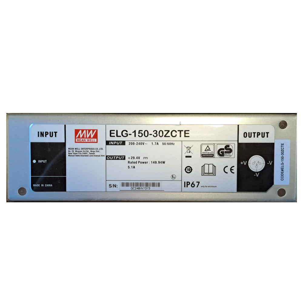 5 A maitinimo šaltinis / įkroviklis ELG-150-30ZCTE. Skirtas vejos roboto įkrovimo stotelei. Tai originalus Wiper robotų gamintojo Zucchetti Centro Sistemi gaminys. Taip pat tinka ir kitiems ZCS gaminamiems vejos robotams – Ambrogio, Wiper ecorobot, Tech-line. Naudokite tik jūsų turimo roboto įkrovimo stotelei tinkantį maitinimo šaltinį. INPUT: 200-240V ~50/60Hz 1.7A OUTPUT: 29.4V 5.1A