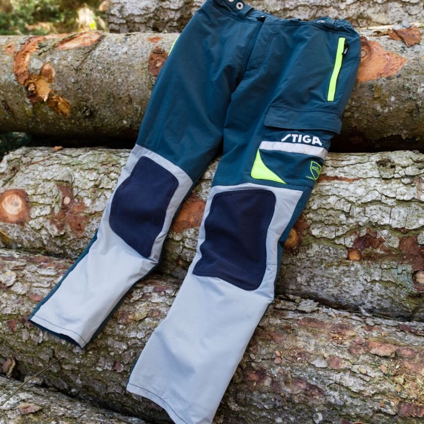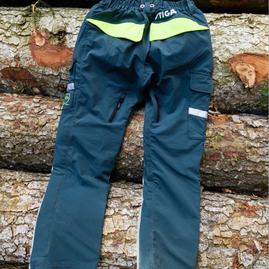 Specialios kelnės, sukurtos darbui su grandininiais pjūklais. Pasiūtos iš keturkrypčio elastingumo, lengvų bei tvirtų ir patogiai nešiojamų medžiagų. Sutvirtinti kelių srities įsiuvai nevaržo judėjimo ir apsaugo nuo galimu sužeidimų. Ryškios spalvos geltoni įsiuvai geresniam naudotojo pastebėjimui tamsiu paros metu.