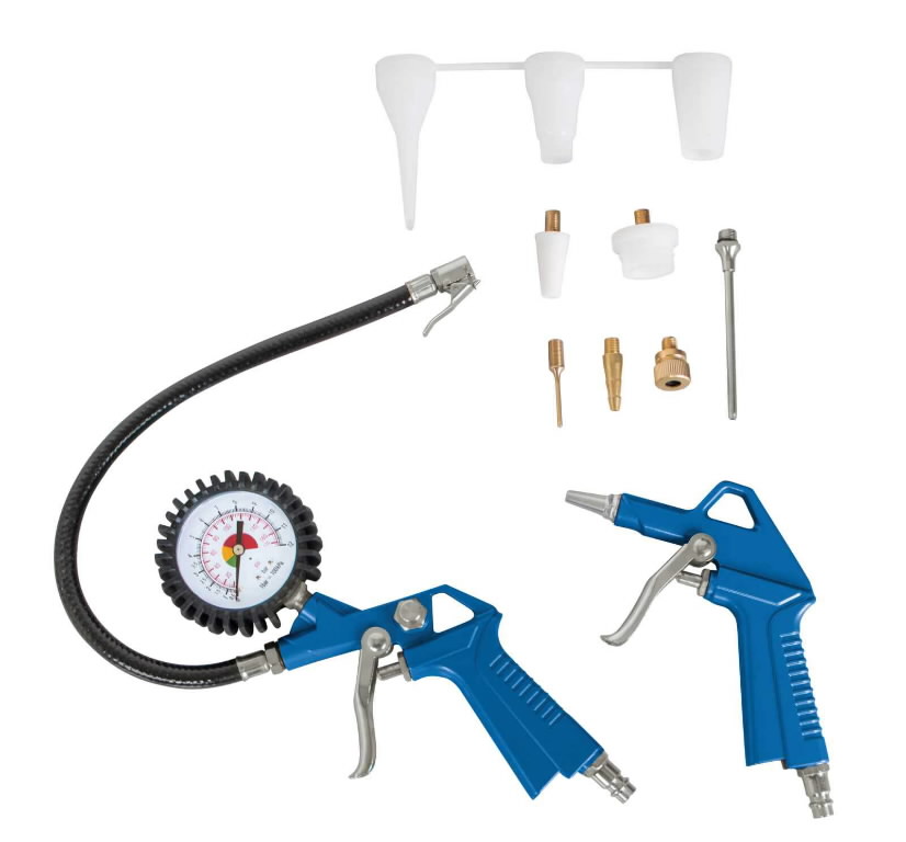 Komplekte yra įvairūs priedai oro putimui ir manometrai slėgio kontrolei ir reguliavimui.