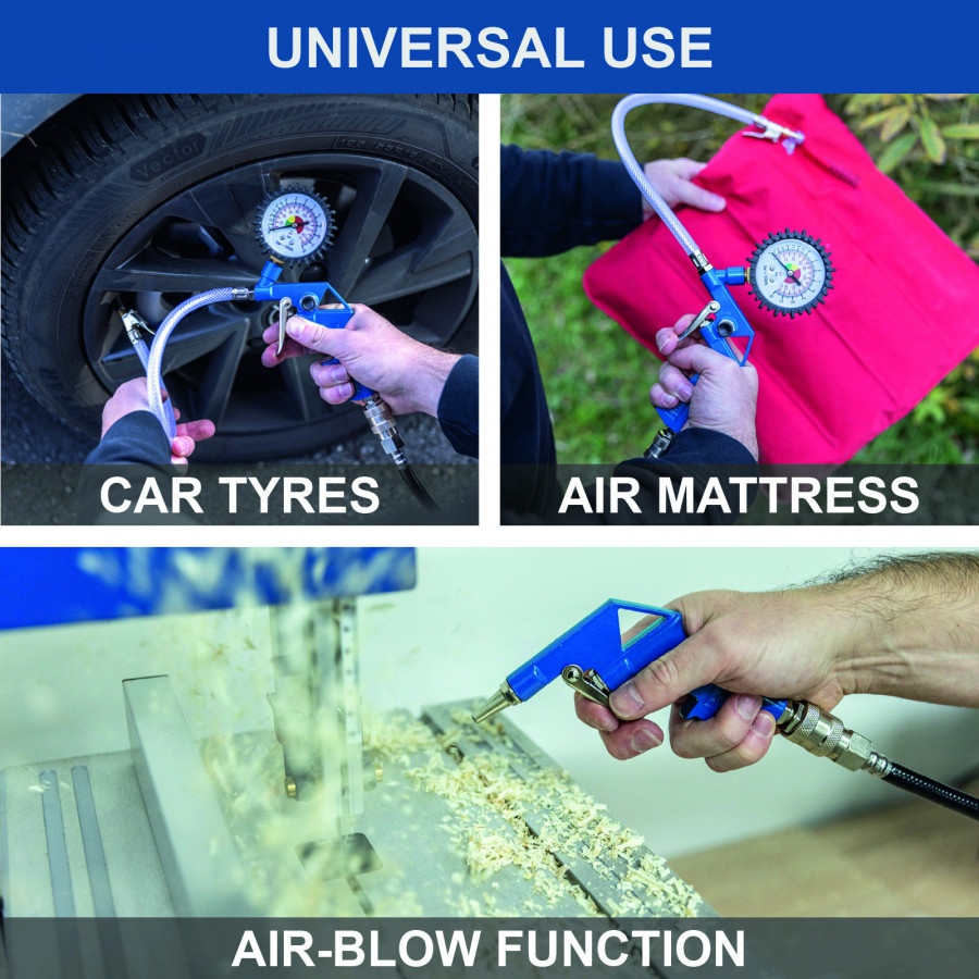 • Komplekte oro pistoletas, padangų pripūtėjas, 3 adapteriai