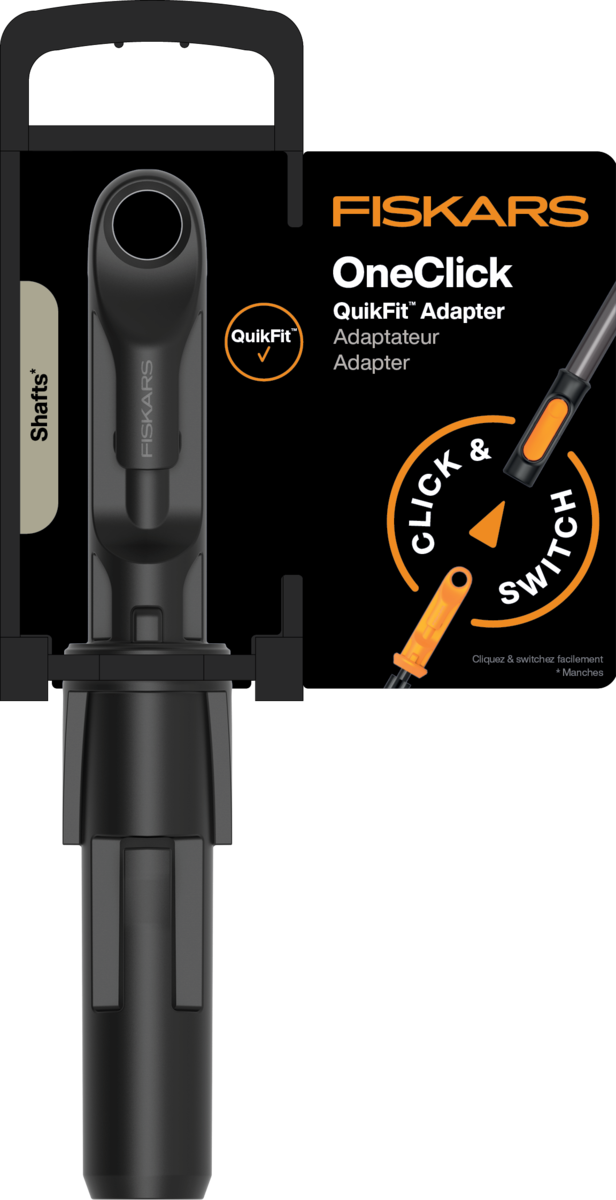 - Lengvai suderinkite visus Fiskars OneClick įrankius vos vienu spustelėjimu su QuikFit‑to‑OneClick adapteriu;