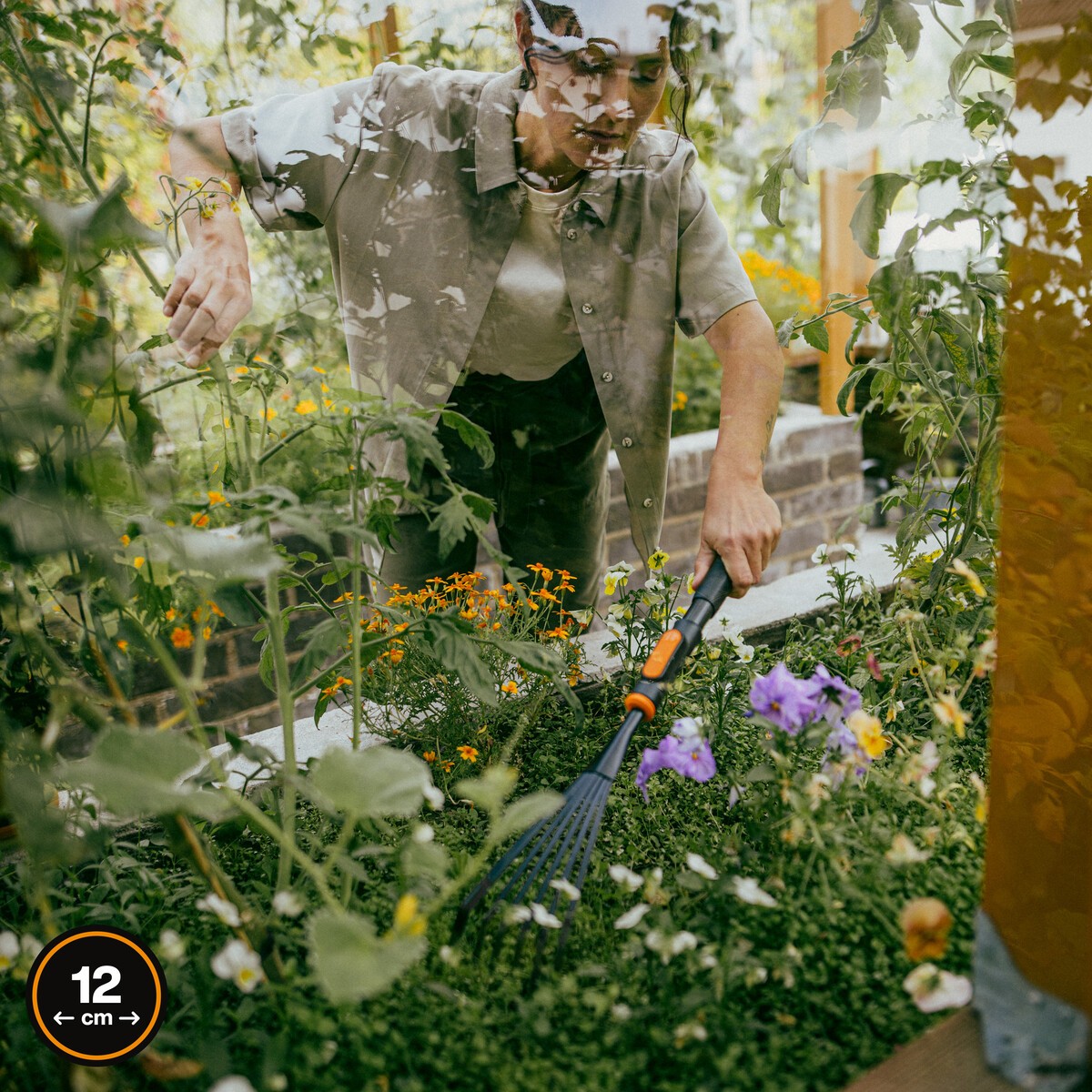 - Lengvai paruoškite gėlių lysves vos vienu spustelėjimu su Fiskars OneClick grėbliuku gėlynams;