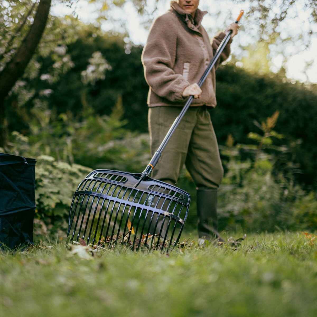 - OneClick grėblys – rinktuvas puikiai tinka lapams, šiukšlėms ar mėšlui grėbti, kasti ir sijoti;