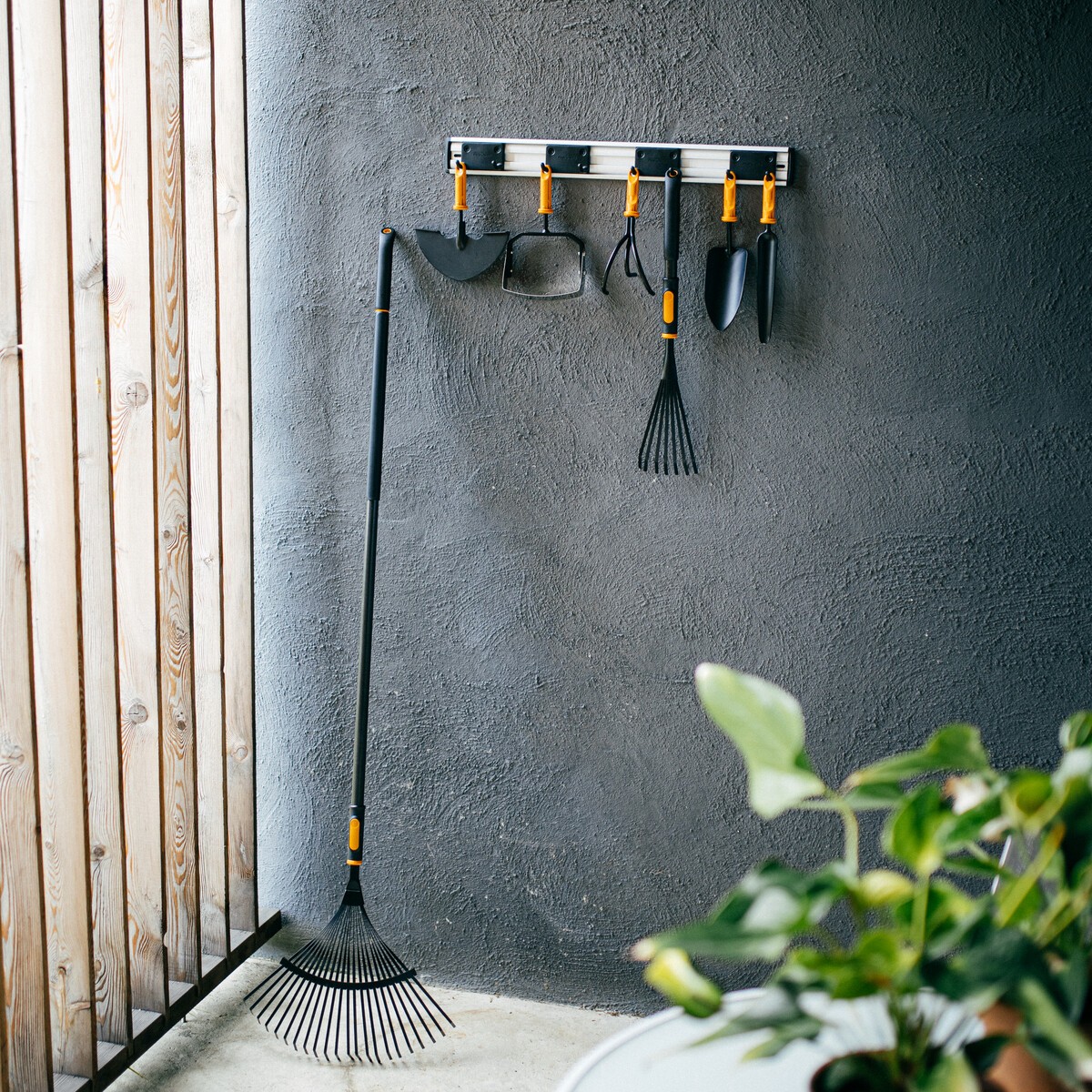 - Tinka įvairiems sodo įrankiams, tokiems kaip kastuvai, kirviai ir kiti įrankiai su kabinimo anga.
