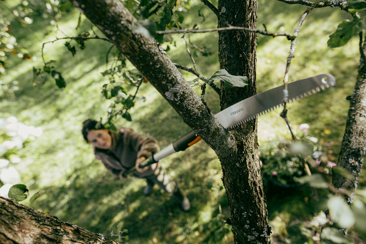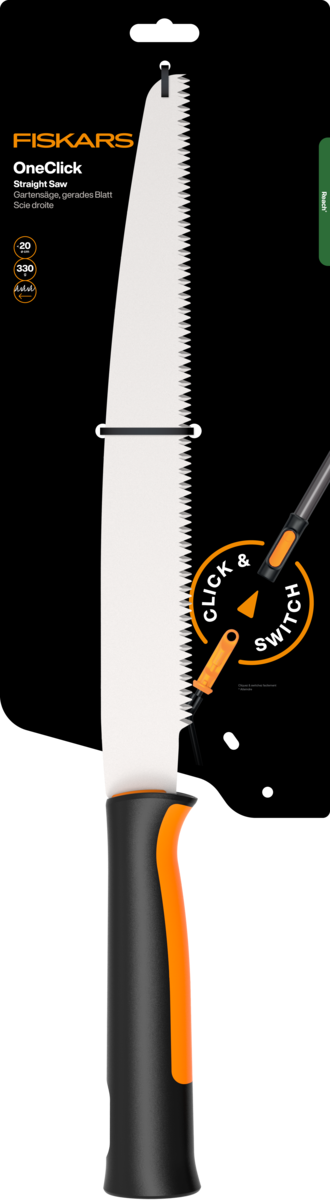 - Lengvai atlikite bendrus genėjimo ir pjovimo darbus vos vienu spustelėjimu su Fiskars OneClick tiesiu pjūklu;