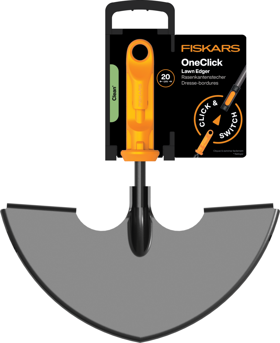 - Fiskars OneClick – tai sistema, kurioje vienas kotas gali būti derinamas su įvairiomis įrankių galvutėmis, leidžianti greitai ir patogiai atlikti skirtingus sodo darbus.