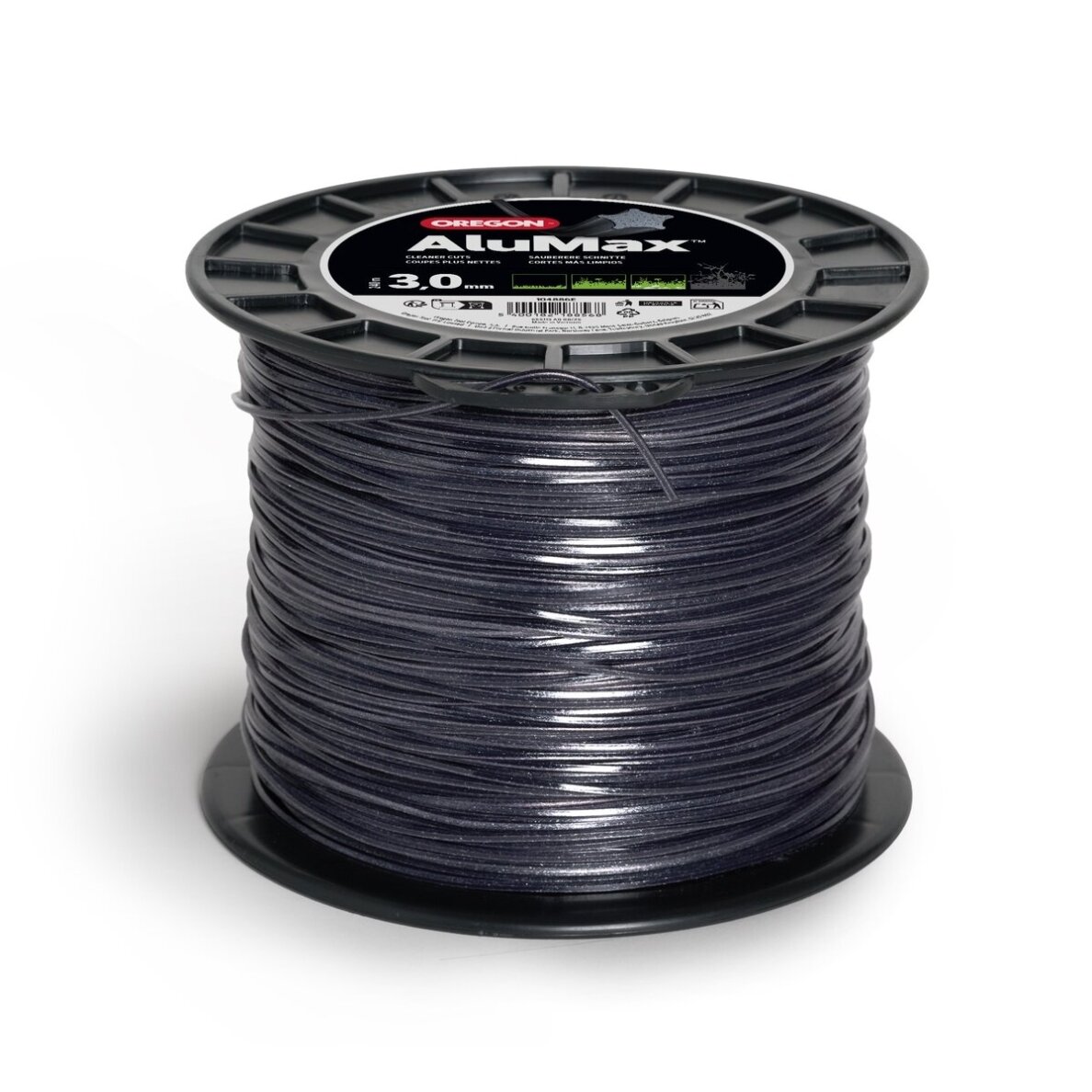 Oregon AluMax pjovimo valas 3,3mm/200m Žvaigždės formos pjovimo valas su aliuminio dalelėmis. Valo savybės: Įterptos aliuminio dalelės suteikia papildomo tvirtumo ir pagerina atvėsimo savybes. Puikus atsparumas lūžiams ties išėjimu iš pjovimo galvos. Didelis atsparumas gijų sulipimui pjovimo galvos viduje. Galima rinktis skersmenį nuo 1,3 mm iki 3,3 mm, bei skirtingus ilgius bei įpakavimus. Žvaigždės formos valas yra su 5 aštriais kampais, todėl itin švariai nupjauna žolę. Žvaigždės forma mažiau apkrauna variklį (palyginus su apvaliais valais).