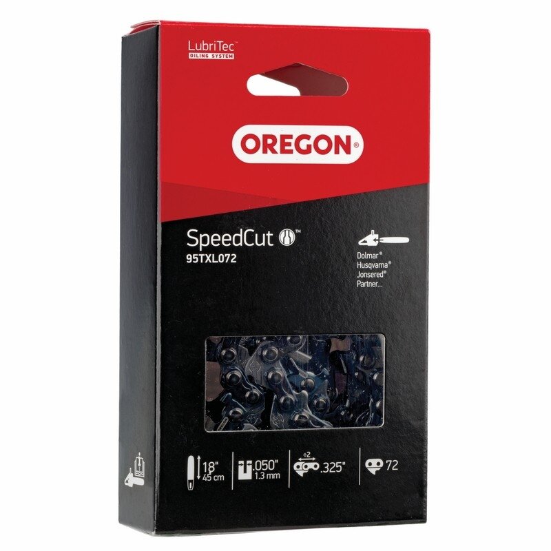 Oregon pjovimo grandinė 95TXL056E – 1,3 mm/56 nareliai/apvaliu kampu Su šia SpeedCut grandine darbas bus greitesnis, lengvesnis ir efektyvesnis. Pjovimo grandinė idealiai tinka arboristams ir namų ūkių savininkams, kurie nori aukščiausios kokybės. 95TXL grandinės skirtos pjūklams iki 55 cc. SpeedCut™ 95TXL siaurų pjūvių pjovimo sistemos yra efektyvesnės, joms reikia mažiau pjūklo galios nei standartinėms pjovimo sistemoms. Mažai vibruojantys „Micro Chisel” pjovimo dantys turi mažo spindulio darbinius kampus, užtikrinančius puikų našumą ir lengvą priežiūrą. Su naujos formos pjovimo paviršiumi pjausite greičiau ir lengviau. Siauro pjūvio grandines SpeedCut rekomenduojame visada naudoti kartu su Speedcut, AdvanceCut arba AdvanceCut HD pjovimo juostomis. Grandinės žingsnis – .325 Narelių skaičius – 56 Grandies storis – 1,3 mm Apvaliu kampu Juostos ilgis – 33 cm Savo pjūklui tinkančią grandinę ir juostą galite parinkti pagal gamintojo katalogą (žr. nuo 88 psl.): OREGON katalogas