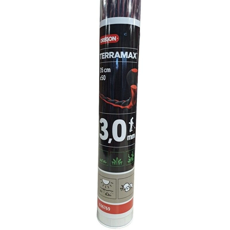 Oregon Terramax pjovimo valas 3,0mm/24cm/50vnt. Visiškai naujas Oregon pjovimo valas TerraMax idealiai tinka profesionalams, dirbantiems atšiauriose, sausose ir akmenuotose vietovėse. Pagaminta iš aukštos kokybės kopolimerų mišinio, užtikrinančio didesnį tvirtumą ir standumą. Šis valas sukurtas ir pagamintas taip, kad padėtų atlikti darbą itin sudėtingomis sąlygomis. TERRAMAX valai pasižymi puikiomis savybėmis ir privalumais: Lengvai pjauna tankią ir tvirtą augmeniją atšiaurioje, sausoje ir uolėtoje vietovėje. Maksimaliai efektyvus ir greitas pjovimas. Lengvas valo padavimas naudojant „Tap and go” automatinio valo padavimo galvas. Pagamintas iš aukštos kokybės kopolimerų, užtikrinančių tvirtumą ir ilgaamžiškumą – atsparus trinčiai ir dilimui, sugeria smūgius ir sumažina lūžimą. Aerodinaminis dizainas.