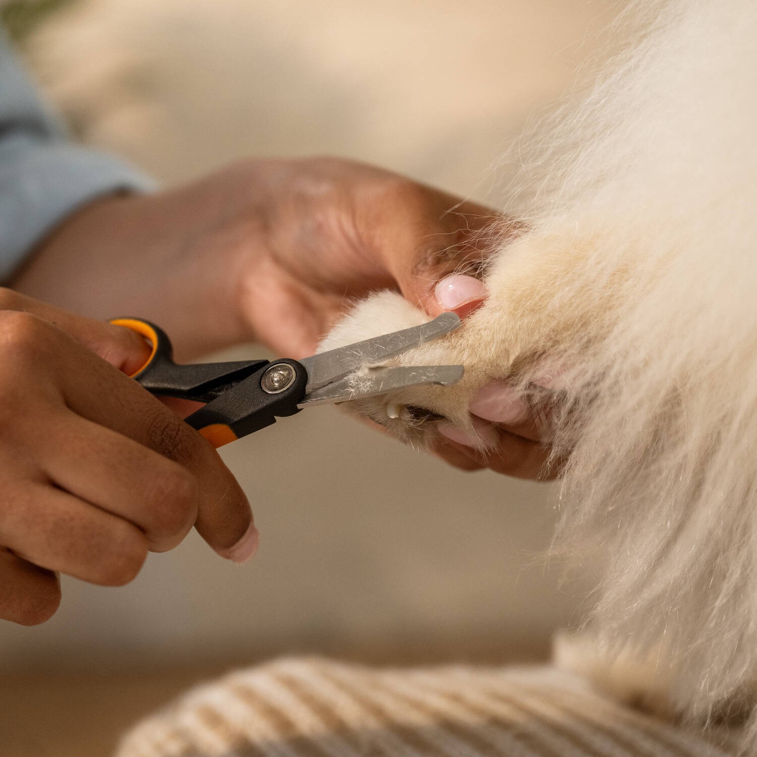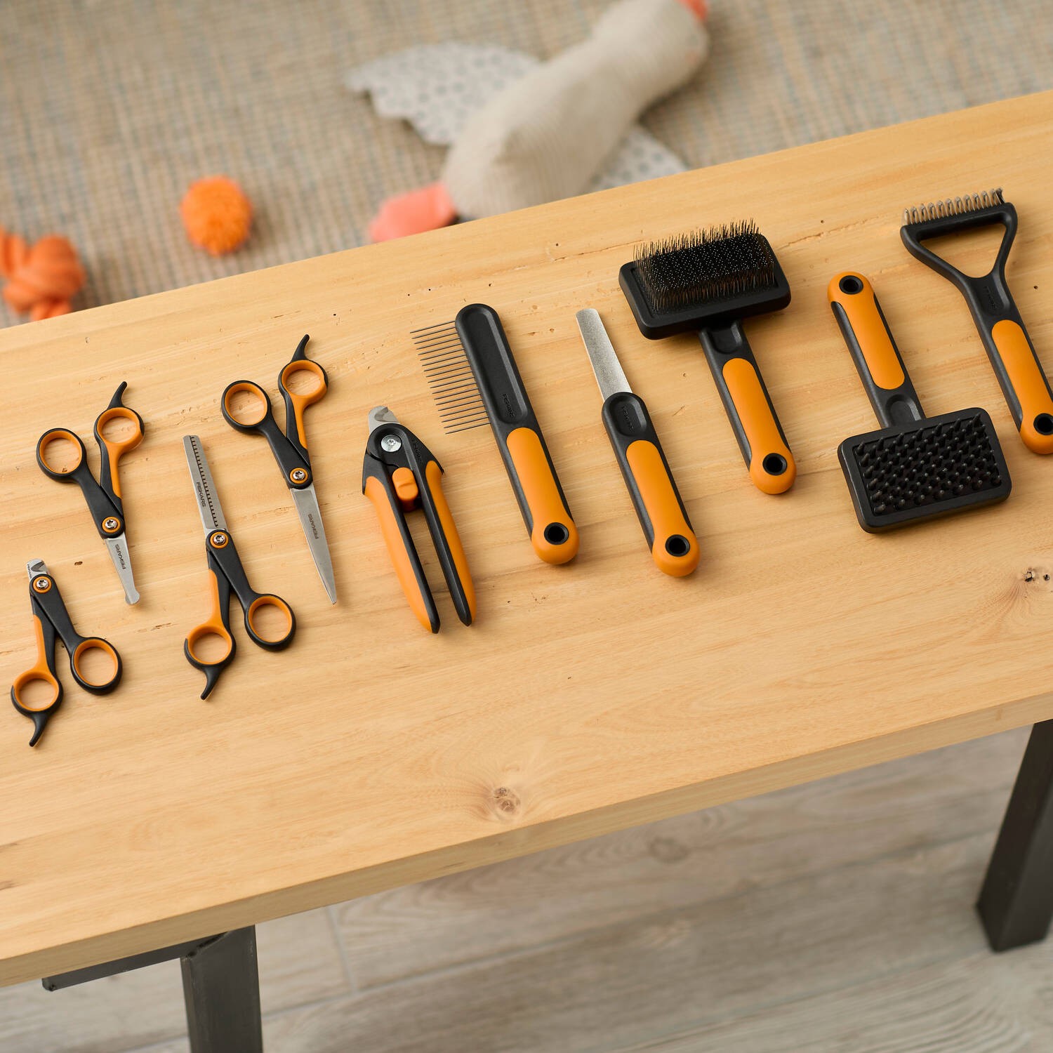 Užtikrintai prižiūrėkite jautrias vietas. Šios itin detalios žirklės perteikia „Fiskars“ kirpimo patirtį ir apgalvotą dizainą augintinių priežiūrai. Sukurtos švelniai ir tiksliai prižiūrėti, suapvalinti jų ašmenų galiukai yra skirti apsaugoti jūsų augintinį nuo badymo, kai kerpate jautrias vietas, tokias kaip akys, ausys ir letenėlės. 5 taškų laikymo sistema suteikia išskirtinę kontrolę formuojant ir kerpant plaukelius sunkiai pasiekiamose vietose. Patvarūs, nuožulnūs nerūdijančio plieno ašmenys užtikrina ilgalaikį aštrumą, kad kirpimas būtų sklandus ir efektyvus. Nes kiekvienas augintinis nusipelno „Fiskars“.