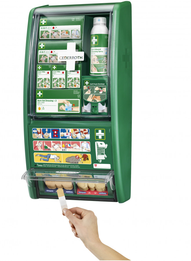 Būkite pirmas aprašęs “Pirmos pagalbos stendas, su minkštu tvarsčiu, Cederroth”