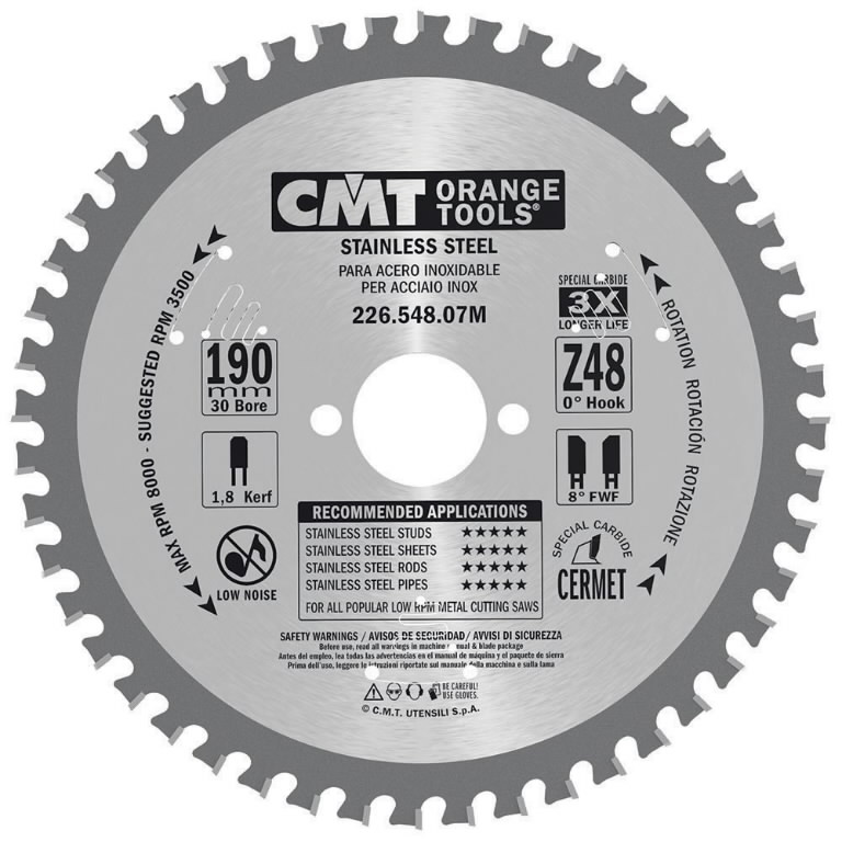 Pjovimo diskas Industrial for Inox 190×1,8/1,4×30 Z48 a= 0° 190×1,8/1,4×30 Z48 a= 0° b=TCG, CMT