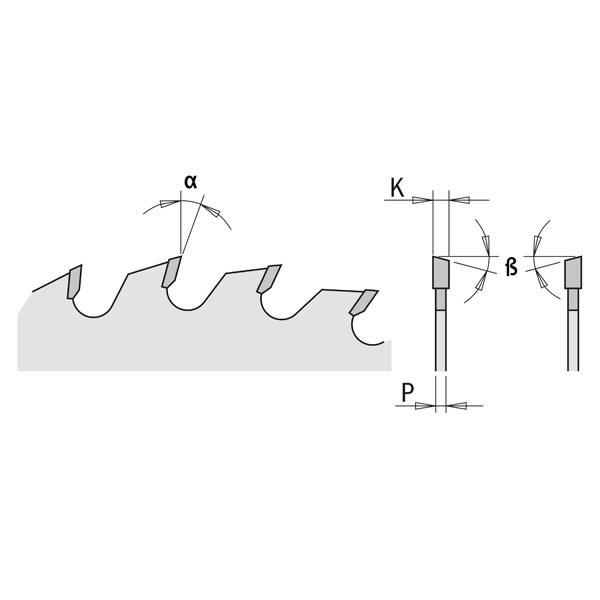 Pjovimo dantų forma 15° ATB.