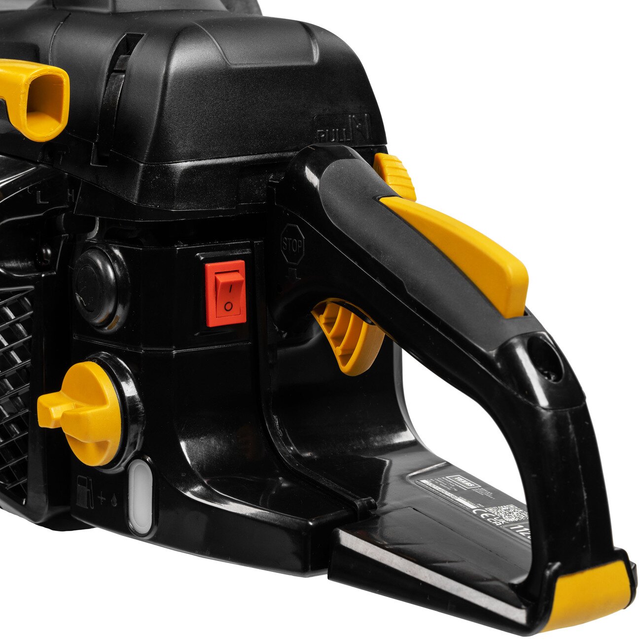 Benzininis pjūklas aprūpintas galingu 45 cm³ varikliu, kuriame naudojamos aukštos kokybės komponentai. Patikimas japoniškas karbiuratorius Walbro užtikrina stabilų kuro tiekimą į degimo kamerą. Starteris su lengvo variklio paleidimo sistema.