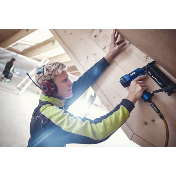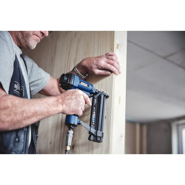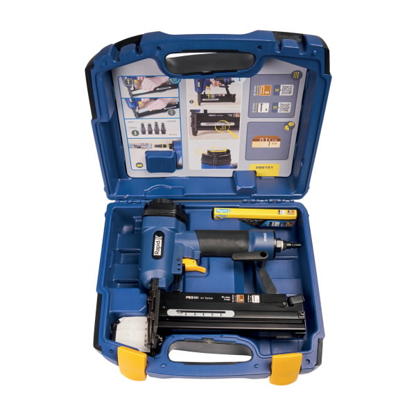 Profesionalus, dvigubas pneumatinis kabiamušis kabėms ir vinims kalti. Juo galima kalti iki 50 mm ilgio vinis, todėl jis puikiai tiks storų medžiagų kalimui. Su PBS151 galima naudoti Nr. 90 kabes (20 – 40mm ilgio) ir Nr. 8 vinis (15 – 50mm). Pristatomas patraukliame ir informatyviame plastikiniame dėkle, kuriame taip pat veržliarakčiai ir 200 25mm ilgio kabių bei 200 30mm ilgio vinių rinkinys.