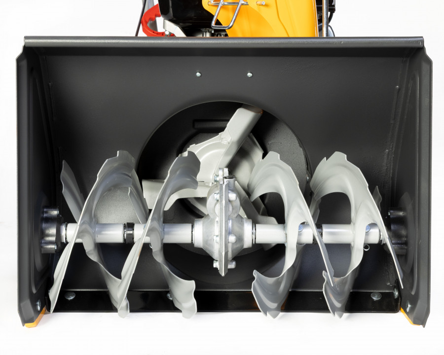 Dviejų pakopų sistema leidžia pirmiausia susmulkinti ir surinkti sniegą, o vėliau efektyviai jį išmesti per reguliuojamą išmetimo vamzdį.
