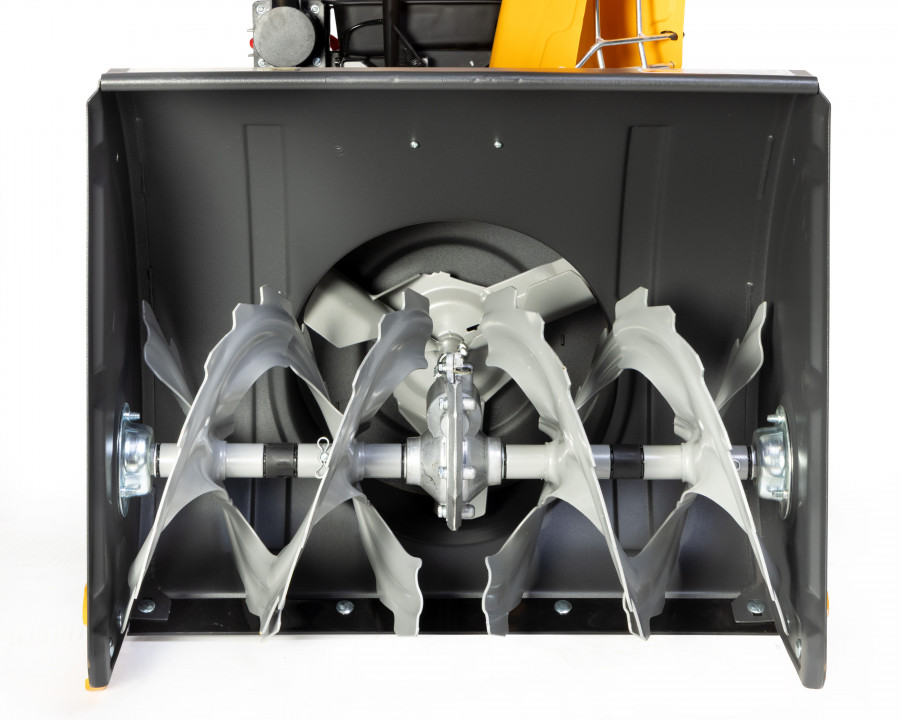 Dviejų pakopų sistema užtikrina efektyvų sniego šalinimą: pirmiausia sniegas surenkamas sraigtiniu mechanizmu, o tuomet stipria oro srove išmetamas per reguliuojamą išmetimo vamzdį. Savaeigė pavara kartu su galingu varikliu leidžia be pastangų įveikti net sudėtingas oro sąlygas. Valdymo viena ranka funkcija ir integruotas LED žibintas padidina naudojimo patogumą ir saugumą, ypač dirbant prasto matomumo sąlygomis.