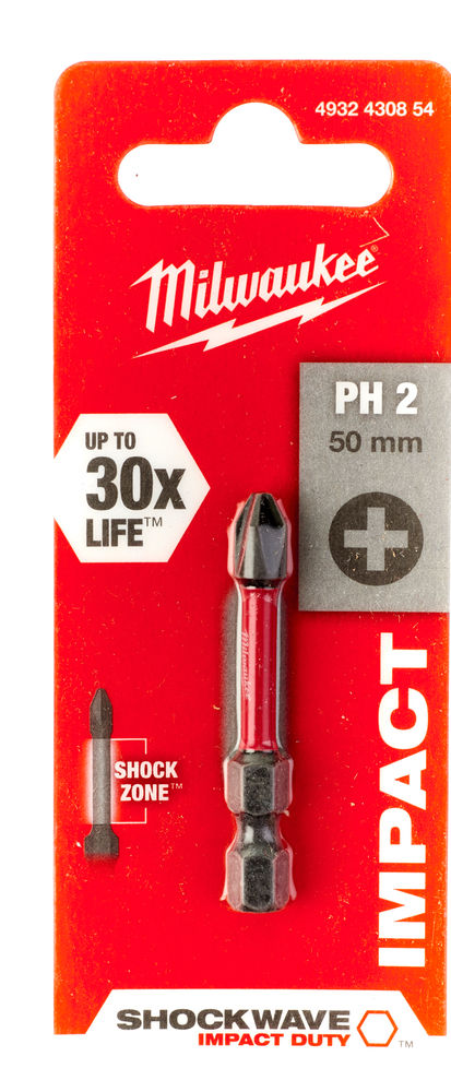 - Pagal užsakymą suprojektuotas plienas – dėl Milwaukee® pagal užsakymą sukurtos metalo formulės Shockwave galvutės yra atsparesnės smūginėms apkrovoms.
