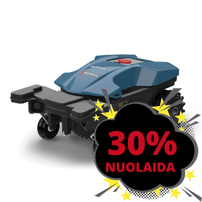 Vejos robotas I100 U Vejos robotas veikiantis be perimetro laido. Šiam robotui nereikia pjaunamo ploto pažymėti laidu, nereikia GPS ar kitokio ryšio, kad robotas galėtų dirbti. Robotas pjauna žolę važinėdamas sklype atsitiktine trajektorija. Jis orientuojasi sklype jutiklių/radarų pagalba. Ultragarsiniai atstumo jutikliai aptinka kliūtis, o žolės jutiklis atpažįsta ar prieš robotą yra žolė ar ne. Kad žolės robotas galėtų dirbti, pjaunamas plotas turi būti pažymėtas robotui suprantamomis ribomis kurias atpažintų roboto jutikliai – ne žemesne nei 15 cm sienele (tvorelė, tankiai sužėlę krūmai ar gyvatvorė) arba ne siauresne nei 25 cm juosta be žolės su tvirtu pagrindu (trinkelės, asfaltas, plytelės ir pan.). Privažiavęs šias kliūtis, robotas pasisuks ir nuvažiuos kita kryptimi. Detalesnį paaiškinimą kaip paruošti sklypą vejos robotui peržiūrėsite paspaudę mygtuką ir atsisiuntę PDF dokumentą. Šis vejos robotas tinka nedideliems, paprastiems kiemams su nedaug kliūčių ir su aiškiai apibrėžtomis vejos ribomis. Į pakrovimo stotelę robotas savarankiškai parvažiuos naudodamas sugrįžimo laidą, kurį lengvai instaliuosite patys. Tuo pačiu laidu robotas gali nuvažiuoti ir į nutolusias sklypo vietas net ir už trinkelių takelio. Spartus darbas, integruotos pažangios technologijos, ličio jonų baterijos, galingi bešepetėliniai varikliai bei galiniai ratai su minkštos gumos profiliu – viskas, ko reikia tobulai jūsų kiemo tvarkai palaikyti ir džiaugtis idealiai nupjauta veja. Nors ir mažas, tačiau šis vejos pjovimo robotas yra aprūpintas visomis didesnių robotų techninėmis savybėmis. Pilnai įsikrovęs robotas gali dirbti iki 04:00 val. Nustatymams iš telefono programėlės naudojamas Bluetooth ryšys, apsaugai yra PIN kodas, lietaus jutiklis, minkštos gumos ratai, kliūčių bei žolės aptikimo radarai.