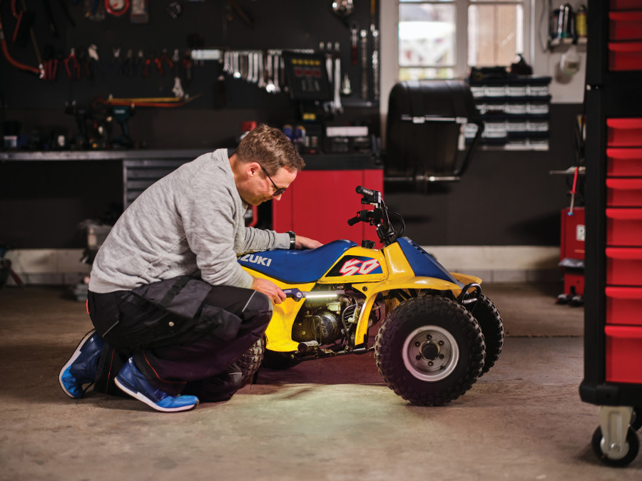 For hands-free operation, The Mechanic is equipped with both a hook and a magnet, allowing it to be easily hung or securely attached to metal surfaces. This makes working more comfortable and efficient in confined spaces.