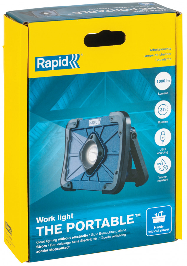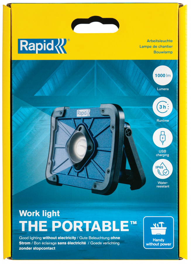 The Portable provides a bright 1000-lumen light with excellent dispersion and features two lighting modes (100% and 50%) to adapt to different working conditions. The stable stand can be tilted up to 180°, allowing you to direct the light exactly where it is needed.