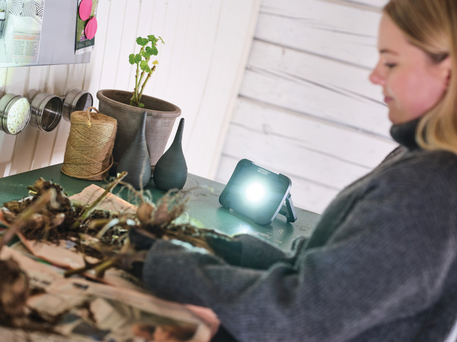 The rechargeable LED work light The Portable is an ideal lighting solution for garages, sheds, attics, or outdoor work where no power source is available. Compact, powerful, and easy to carry, it delivers reliable illumination wherever you need it.