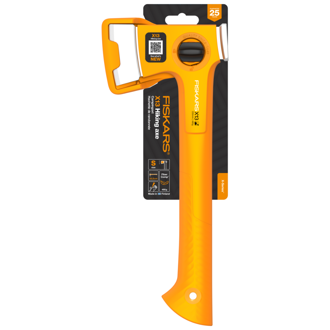 Labai lengvas X13 turistinis kirvis yra lengviausias X serijos kirvis, tinkantis visų rūšių stovyklavimui, stovyklavimui ir kitiems lengviems medžio darbams. Jo konstrukcija puikiai subalansuota. Lengva nešioti, laikyti ir patogu naudoti net viena ranka. Dėl trintį mažinančios dangos ašmenys be vargo slysta per medieną ir apsaugo nuo rūdžių. Ryškiai oranžinė FiberComp™ rankena yra labai patvari ir puikiai išsiskiria aplinkoje. 2023 m. „Red Dot“ geriausio dizaino apdovanojimo laimėtojas.
